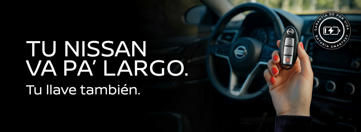 Legal: Compra una batería para la llave inteligente de tu Nissan en un Centro de Servicio Autorizado Nissan y recibe el reemplazo de batería gratis de por vida. Aplica para todos los modelos Nissan del año 2015 en adelante. Para redimir la garantía, haz una cita y visita un Centro de Servicio Autorizado Nissan presentando tu comprobante de compra; si se requiere, la batería será reemplazada sin costo. Esta garantía solo es redimible en Centros de Servicio Autorizados Nissan, no es transferible y es válida únicamente al realizar mantenimiento en dichos centros autorizados. La oferta tiene vigencia hasta el 10 de enero del 2026.