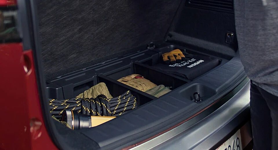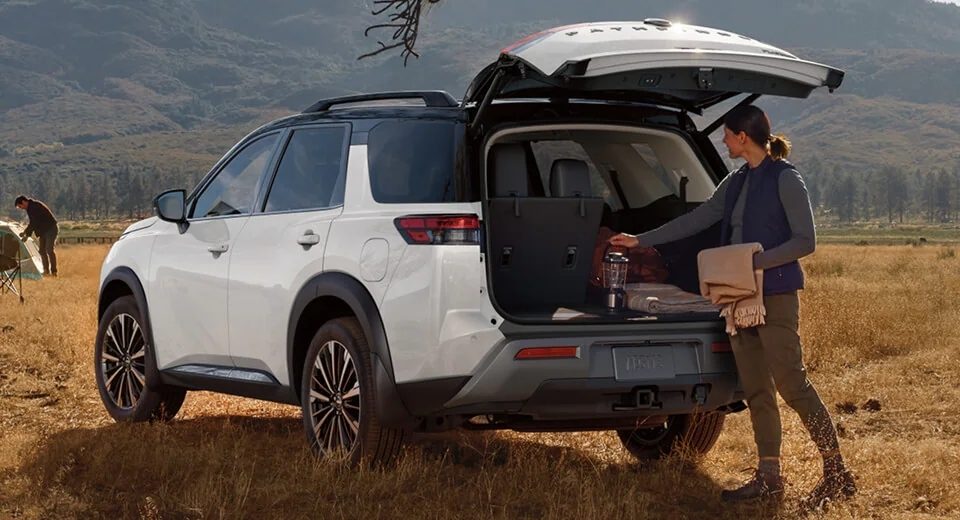 Pathfinder está preparada para ayudarte a llevar lo que necesites con asientos fácilmente plegables y un enorme espacio de carga. Y la compuerta del baúl activado por movimiento disponible facilita aún más la carga. [[1028]]