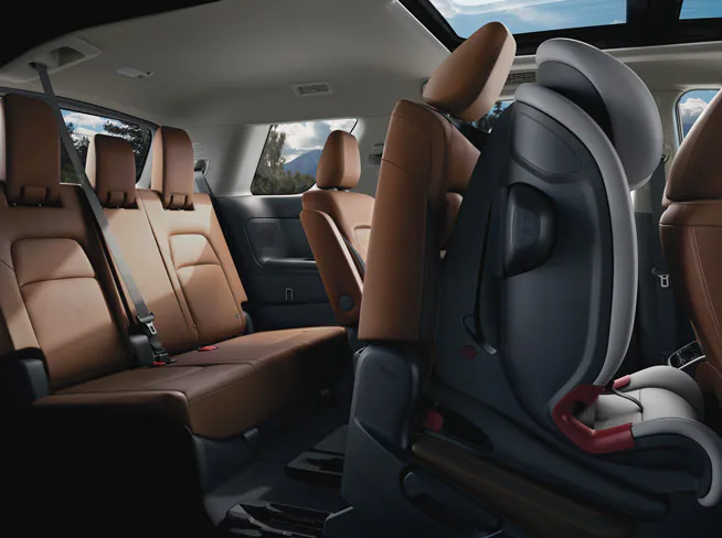 Pathfinder viene equipado con 10 bolsas de aire, incluidas bolsas de aire frontales de dos etapas, bolsas de aire de impacto lateral y de rodillas, y bolsas de aire de cortina montadas en el techo para todas las filas. Y con espacio para hasta 8 personas y asientos EZ FLEX en la segunda fila, Pathfinder tiene espacio para la tripulación y los niños también. [[1033]]