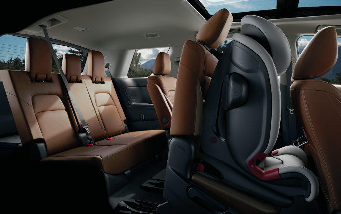 Monta a la familia con facilidad. El sistema de asientos EZ FLEX™ de Pathfinder incorpora Latch and Glide™ el cual facilita el acceso a los asientos de la 3ra fila. Solo tienes que pulsar un botón para que el asiento se incline y se deslice hacia delante automáticamente, incluso cuando hay un asiento para niños. [[352]] Esta innovadora tecnología funciona en ambos lados del vehículo.