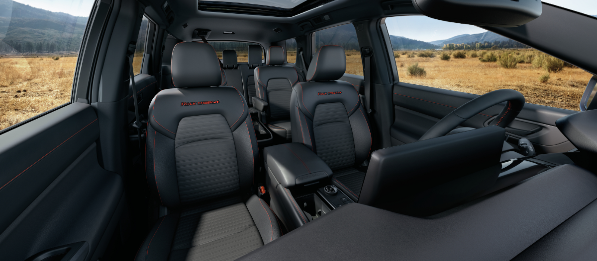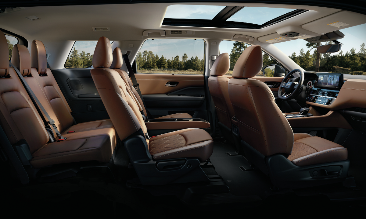 Las sillas tipo capitán disponibles en la segunda fila de Pathfinder te brindan una comodidad de primera clase. La consola central brinda espacio adicional de almacenamiento para tus copilotos, y también es fácil de remover. [[351]] ¿Familia grande? Los asientos de segunda fila estándar te permiten llevar hasta ocho pasajeros con espacio para estirar los pies.