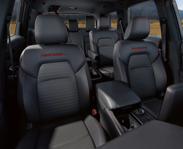 Nissan Pathfinder® Rock Creek® 2026. Los asientos tipo capitán disponibles son tan cómodos, elegantes y duraderos que sus pasajeros podrán comenzar a tomar decisiones desde la segunda fila.