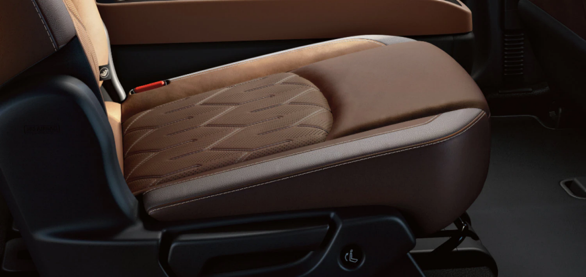Nissan Pathfinder® Platinum 2026. Para un fácil acceso, incluso con un asiento para niños colocado, los asientos de la segunda fila se deslizan hacia adelante y se inclinan en dos simples movimientos. Se puede acceder al sistema desde cualquier lado del vehículo y también desde la tercera fila. [[1035]]